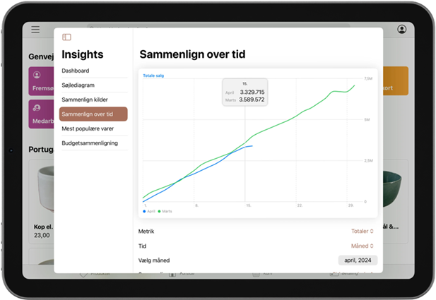 Vi har forbedret vores grafer for at give jer større indsigt i jeres data. Nu kan du udforske datapunkter ved at trække din finger hen over grafen for at se totalerne på specifikke tidspunkter.